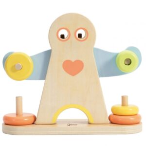 Classic world set balansiranja, sadrži drvenu podlogu, kao i drvenu ilustraciju čovečuljka u uspravnom položaju. Sa njegove leve i desne strane je moguće dodavati drvene obruče u različitim bojama i oblicima. Razvija kod dece finu motoriku šake.