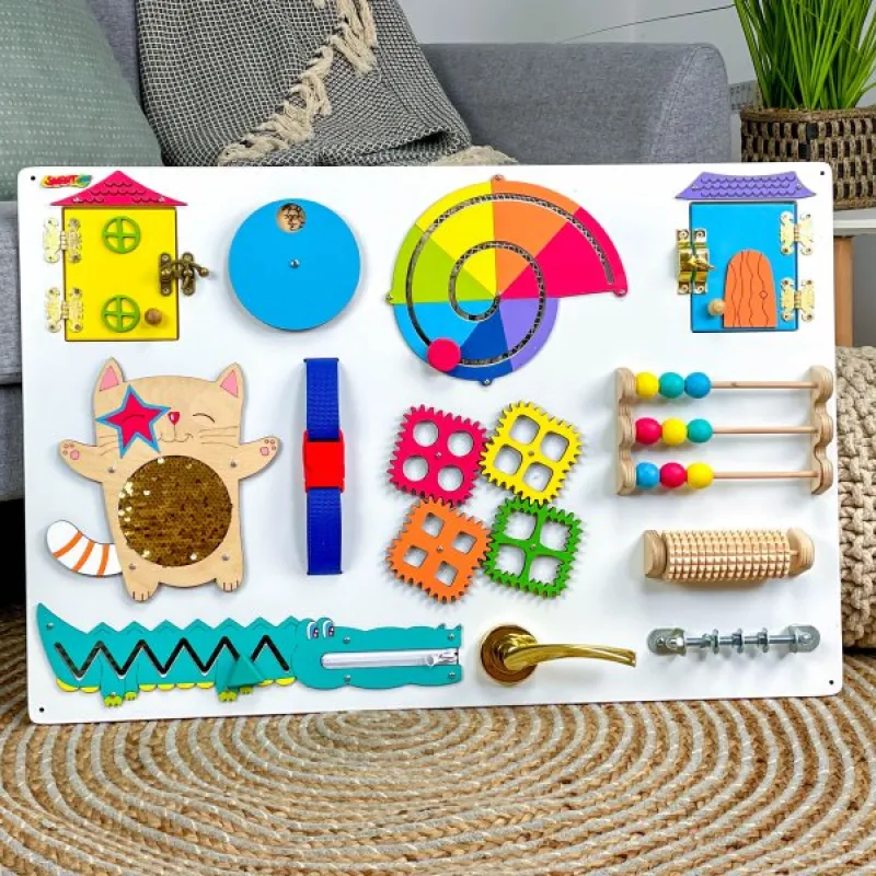 Najmlađe će da privuku mali zupčanici, bubnjevi sa lopticama, računaljke. Stariju decu će više zanimati vratanca sa različitim bravicama, lavirinti, pertle.